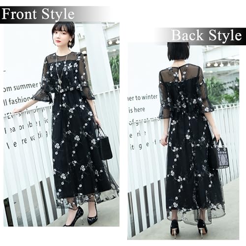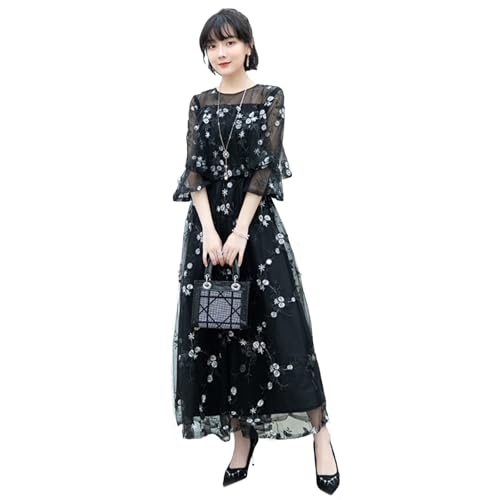 [DEEPEYES] 結婚式 ドレス ロング 個性的 Aライン レース 刺繍 ワンピース 20代 30代 40代