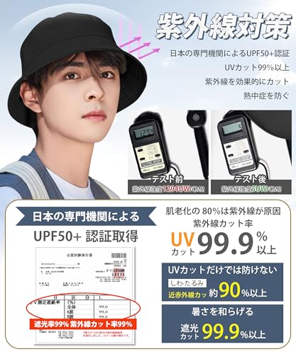 この商品について 【商品説明】:HORADON 最新 帽子アドバイザー監修 おしゃれ バケットハット メンズ、 UVカット 帽子 メンズ。軽量 小顔 無地 頑丈なつくり 深め UVカット 通気速乾 紫外線対策 帽子。素材:コット。サイズ:2サイズ(56-58cm、60-62cm)。季節:春、夏、秋。洗濯:手洗いして形を整え、風通しの良い場所で陰干しすることで清潔に保てます。汚れた場合は、湿ったタオルなどで軽く拭いてください。また、洗濯ネットに入れて洗浄することも可能ですが、お手入れやメンテナンスは必要です。夏の紫外線対策に最適なUVカットハットです。 【UPF50+認証済み】:サファリハットは日本国内専門機関UPF 50+認証済み、つばが広めで、日焼け止め、お肌をお守りします、紫外線防止、さらり日差しの照り返しによる眩しさ防止にもなります、UV効果の強い日差し季節には最適です。サファリハットの広いつばは99%以上の日差しを遮り、お顔だけでなく首の後ろと耳も守ります。日焼けを防ぎ、効果的紫外線を遮蔽でき、肌を保護する、熱中症予防にも役立ちます。 【スタイリッシュなシンプルさ】:帽子はシンプルなデザインで、ファッション性が高く。無地のデザイン、どんな日常のカジュアルスタイルやデニムスタイル、またはワークウェアスタイルにも簡単に合わせられます!帽子堅実な作りです、簡単には変形しない。おでこに当たるスベリの部分はサラサラした生地、汗をかいてもくっつかないしチクチク感もありません。手洗いまたは洗濯機で洗える、汗やファンデで汚れても安心。あご紐は取り外し可能で風の強いとき、自転車に乗っても飛ばされない。春夏のアウトドアや日常生活に最適です。 【髪型が乱れない】:丁寧に作ったヘアスタイルが帽子で台無しになることはよくあることで、それはかなり残念なことだ。この帽子は少し余裕があるのでキャップのように前髪を押さえつけられて、前髪の崩れを気にすることもなく、被ることが出来ます(ワンサイズ上をお勧めします)。もちろん、ヘアスタイルの手入れにあまり時間をかけたくないときや、外出を急いでいるときは、この帽子をかぶれば乱れた髪を完璧にカバーでき、シンプルで便利だ。持ち運びも簡単だ、折りたためるタイプで、カバンに入れて簡単に持ち運びができ、旅行やちょっとしたお出かけにも便利です。 【幅広い用途】:ご家族や友人へのプレゼントにもおすすめです。レジャー、ショッピング、ジョギング、ゴルフ、野球、ウォーキング、釣り、試合を見る、登山、ハイキング、トレッキング、自転車、様々な屋外アクティビティにお役立ちいただけます。また、お子さんやご主人、友人、お父さん、お母さんにプレゼントすることもできる! 見た目がとても良く、実用的な日除け帽子です! 続きを見る この商品について