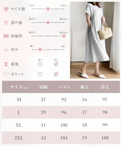 登録情報 素材構成 65% ポリエステル, 35% 綿 クロージャータイプ プルオン ネックスタイル ハイネック スリーブタイプ 長袖 この商品について ゆったり着やすい。リラックス感漂うロングワンピースが登場しました。女性らしいAラインシルエットになっており、サッと着るだけでコーディネートが決まります。リネンライク素材で夏も涼しく着れるのがうれしい。ちょっとした小物が入れられる便利な両側ポケット付き◎ 長めの袖丈で二の腕を自然に隠し、ウエストまわりもゆとりのあるつくりになっているので体型カバーワンピとして優秀です。シニアの方や妊婦さんのマタニティー服としてもおすすめ。暑い時期も過ごしやすいひざ下のスカート丈。動きやすく、見た目も涼し気です。 旅行やドライブ、ショッピングやデート、散歩やウォーキング、通勤や通学、テレワークやリモートワーク、お子様の送迎、近所への買い出しでのワンマイルウェアとして、おうち時間でのルームウェアとしてなど着用できるシーンがたくさん。お気に入りの一着になる事間違いなし。カラーは着こなしやすいホワイト、ブラック、パープル、ネイビー、オレンジの5色展開。 シンプルな無地なので、麦わら帽子やかごバッグなどのサマーアイテムはもちろん、お手持ちのキャップやバケットハット、トートバッグやリュックも合わせやすいでしょう。ベルトでウェストマークしてスタイルアップするのも◎ サイズ:肩幅/胸囲/総丈/袖丈 【M】37/92/97/16 【L】39/96/98/17 【XL】41/100/99/18 【2XL】43/104/100/19 続きを見る この商品について