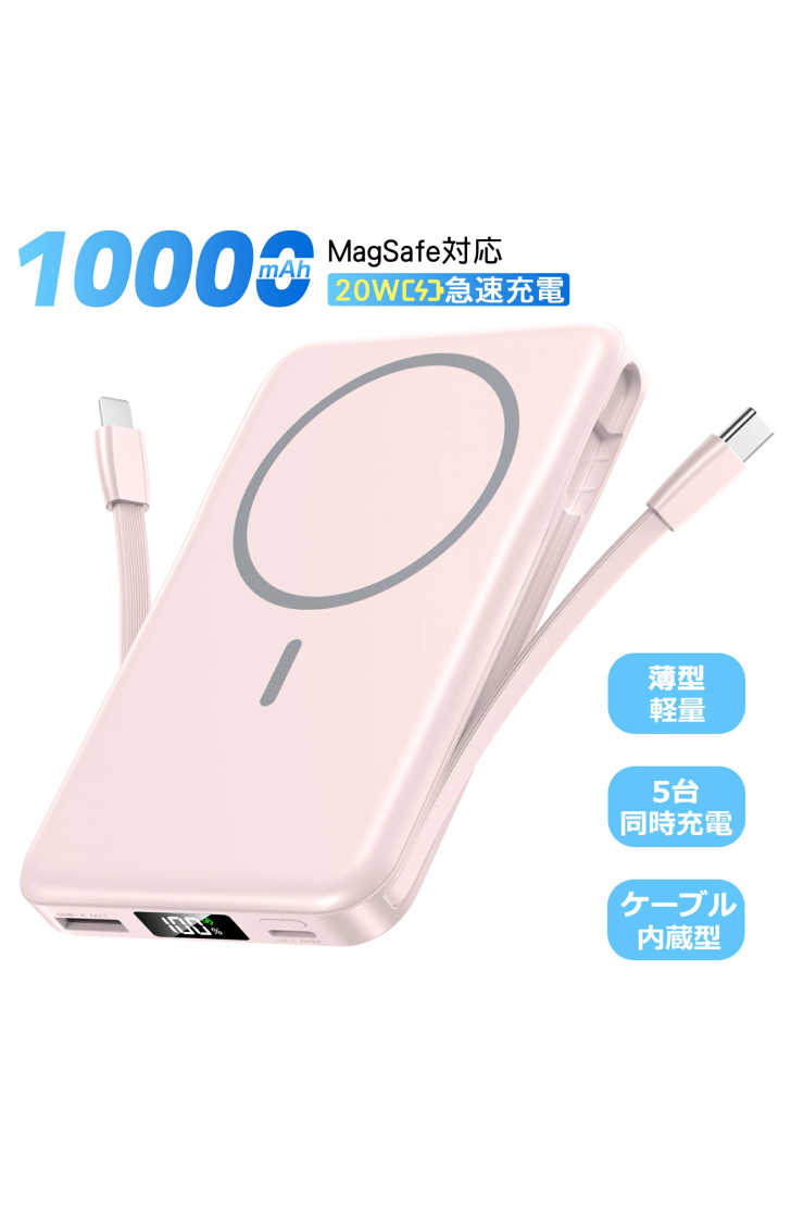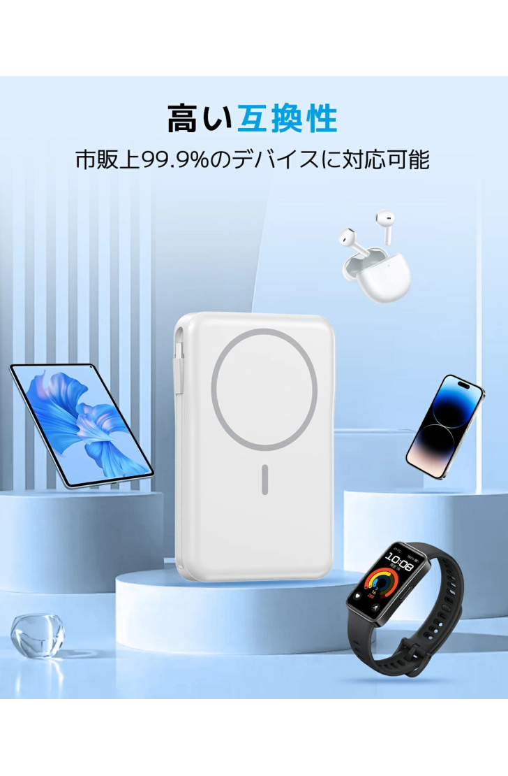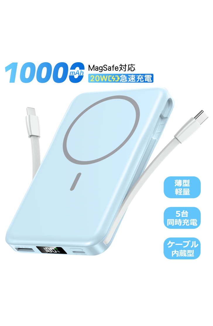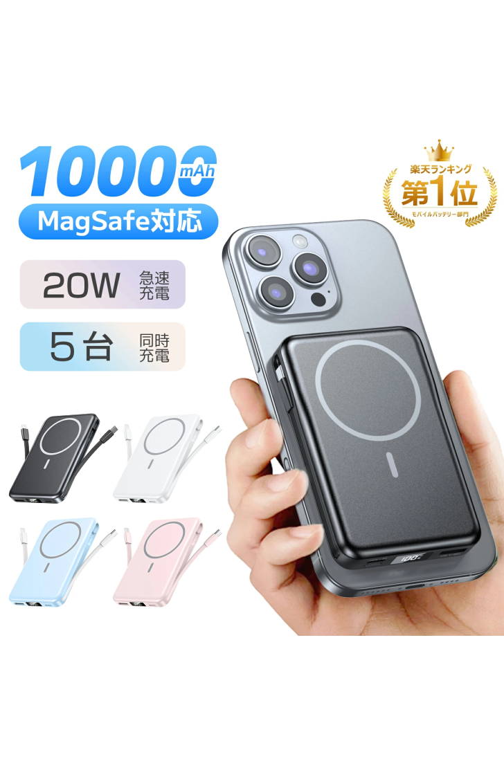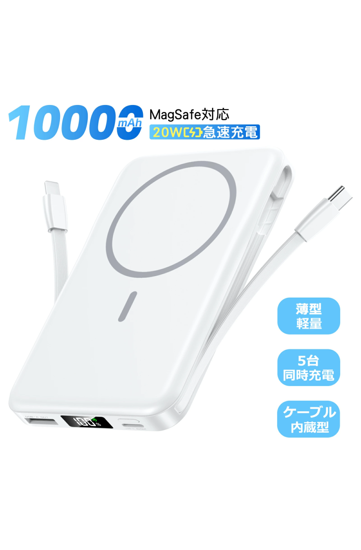 15%OFFクーポン&P5倍で2,158円!/モバイルバッテリー 軽量 小型 MagSafe モバイルバッテリー 10000mAh 20W急速充電 ワイヤレス充電器 モバイルバッテリー 大容量 iPhone12~16 LED残量表示 マグネット式 PD&QC3.0対応 Type-C/Lightningポート 5台同時充電