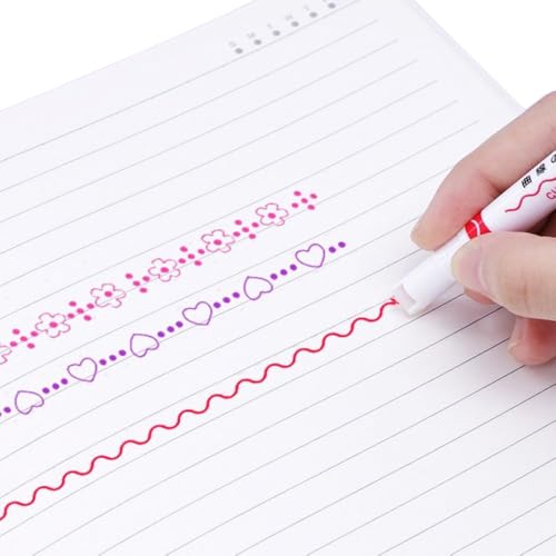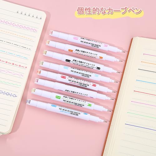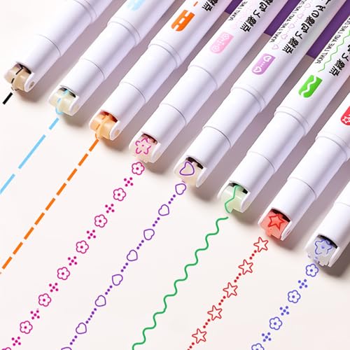 OptiPro カーブペン 水性ペン 6種類 8色 デュアルチップ カラーペン 蛍光ペンローラースタンプ ハートライン 花模様 波線 お絵かき イラスト オフィス用品 手帳 DIY 手帳 日記 筆記用具 ギフト (8色セット)