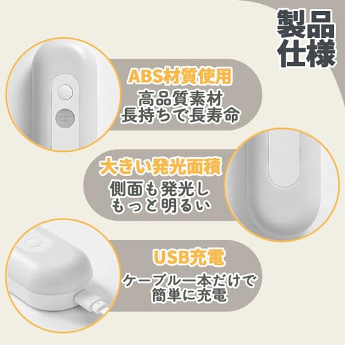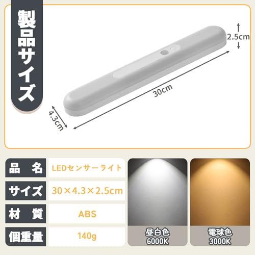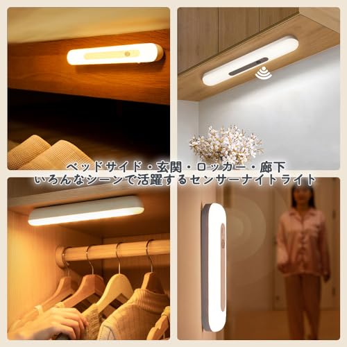 led人感センサーライト USB充電式 キッチン用ライト 室内 LEDバーライトマグネット着脱式 無段階調光 貼り付け式 壁 工事不要 常夜灯 センサーモード/常点灯モード 長時間使用 階段 廊下 玄関 足元灯 戸棚 洗面所 避難 防災 停電対策 ナイトライト フットライト 30cm 昼光色 1本, ZH-tiaodeng-CL-30cm-1set