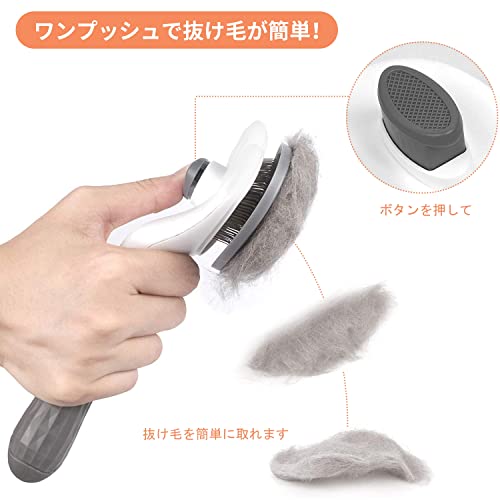 • 1.【ワンプッシュ式】:ブラッシン背面のボタンを押して、付いた抜けた毛を完全に押し出すことが簡単にできます。また、このブラシのハンドルは人間工学に基づいてのデザインを採用しており、完全に無公害の天然ゴム素材を使用しており、長期間で安全に使用することができます。