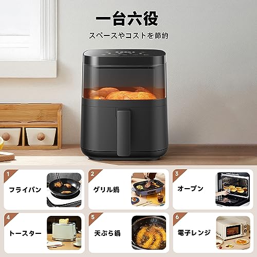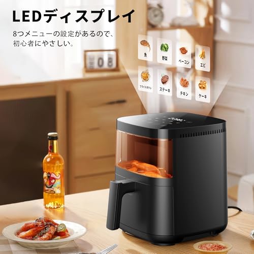 - 【LEDディスプレイ&可視窓デザイン】このノンフライヤーは、LEDディスプレイとスマートなタッチデザインを採用し、料理を作る時に濡れた手でも安心使用できます。アップグレードされた可視窓のデザインにより、食材の仕上がり具合を一目でチェックでき、家事中に何回もバスケットを取り外して確認する必要はありません。また、スマホを使用して、可視窓を通じて食材の調理プロセスの変化を記録し、ビデオに切り取ってインターネットに公開し、料理の楽しさをみんなと共有できます。