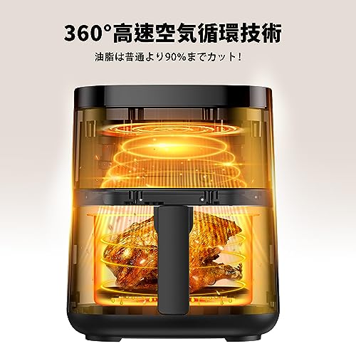 - 【ご家族の健康食生活をサポート】このノンフライヤーは360°高速空気循環技術を搭載し、NTCインテリジェントな温度制御技術を装備しており、食材の脂肪を利用して食材を均一に加熱できだけでなく、通常のエアフライヤーと比較してカロリーを最大92%削減できます。家族に健康的な食生活を作りたい方にぴったりの調理家電です。