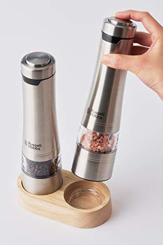 ラッセルホブス 電動ミル ソルト&ペッパー (2本セット) ウッドスタンドセット 7923JP シルバー