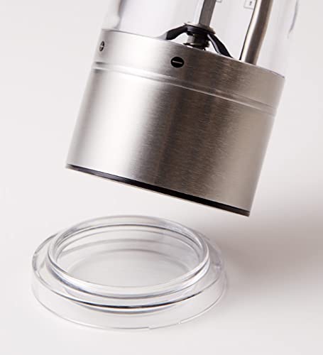 安定感のあるウッドスタンドが付属した特別セット品上部のボタンを押すだけで自動で挽くことが可能片手で操作できるから混ぜたり炒めたりする手を休めずに使用することができる残量が一目でわかるよう、充填ケースは透明になっているまた広めの充填口により、塩や胡椒を楽に上手に入れることができるボタンを押している間はLEDライトが点灯。手もとを明るく照らしてくれるから分量が見やすく、暗いキッチンでも便利に使える手に自然とフィットするシンプルで使いやすいデザインステンレスの輝きが洗練された印象を与える