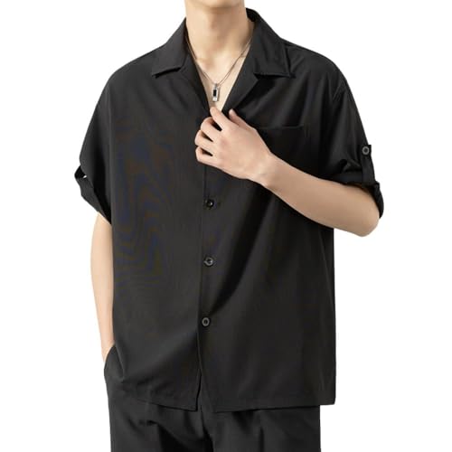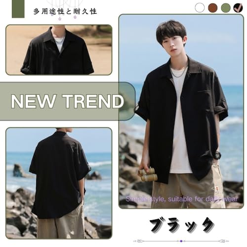[wolass] シャツ メンズ 半袖 ゆったり アイスシルク 軽い 無地 おしゃれ 吸汗 ワイシャツ 人気 春夏 対応 シンプル ポケット付き