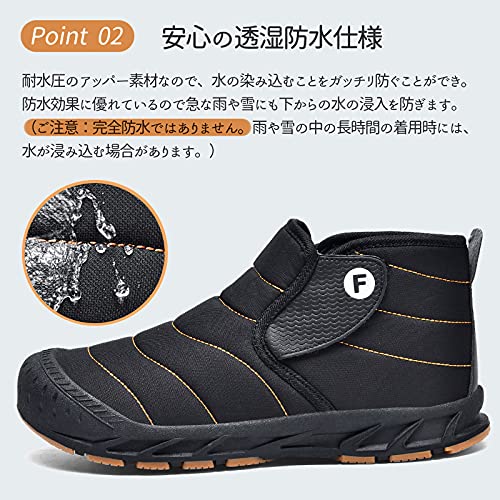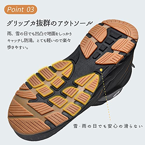 この商品について 【冬をオシャレで暖かく過ごせるょう!】内側には足先までふかふかと触り心地のよいフリースのような素材を起用し、足を優しく包み込むので寒い外気から足を守ります。足を入れた瞬間から暖かさを実感できるボアをつま先まで全面に施し防寒性が格段にアップ。防寒対策にピッタリで冬の通勤・通学・お出かけに暖かさを提供します。 【雪・雨の日でも安心の滑らない】ソールには低温時でも硬化しない「ウィンターグリップソールラバー」。雪、雨の日に滑りにくい分厚く凹凸のあるソールで、悪路もしっかり捉えるアウトソールグリップカのあるアウトソールは濡れた地面や雪道などの悪路でも歩きやすく、野外での活動をしっかりサポートしてくれます。 【雪国にも対応・安心の透湿防水仕様】耐水圧のアッパー素材なので、水の染み込むことをガッチリ防ぐことができ、水分の多い雪にも強く、積雪や降雪時靴内の爽やかを保ち、湿気から逃れ。日常のお出かけや通学や普段履きにはもちろん、雪国への旅行などにも気楽で遊んで行けます。(しかし、完全防水ではありません。雨や雪の中の長時間の着用時には、水が浸み込む場合があります。) 【防菌・防臭・軽量】①足を入れた瞬間から体感の温かいスノーブーツは一度履くと手放せません、そして抗菌作用で臭いを抑制し、湿度を吸収してくれるので、足周りが快適に保たれています。②ソフトなフィット感で快適性に優れており、さらに軽量のため長時間履き続けていても足を疲れさせません。 【用途广泛的雪地靴】シンプルなデザインと落ち着いたカラーはどんなファッションにも取り入れやすく男女問わずおすすめのブーツです。防水・防寒で、梅雨の時期や寒い季節に大活躍! タウンユースはもちろん、キャンプなどのアウトドアシーンでも、足元を暖かく快適に。 続きを見る この商品について