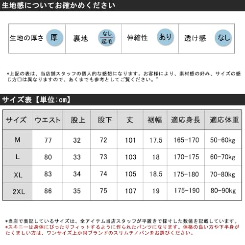 登録情報 素材構成 ポリエステル/ポリウレタン この商品について 寒い冬に嬉しい裏起毛パンツで、伸びるストレッチ素材で心地よい『ストレスフリー』 な穿き心地伸縮性あるストレッチ素材を使用しており、動きやすく窮屈感を解消! 【2タイプのウエスト】【前閉じ/調整紐】ウエスト部分にはゴムバンドに加えて調整用ひもが付いており、好みに合わせて自由に調節可能です。【前開き/ファスナー】ウエスト部分にはゴムバンドだけでなくベルトループが付いており、ベルトを通してサイズ調節ができる仕様です。 計算された美脚のシルエット、パンツにはこれでもう迷わない!!どんなコーデにもあわせやすく使いやすいそれでいて美脚に見える無敵のシルエット! 【M】 ウエスト:77cm 丈长:101cm 適応身長の体重:160-170cm/50-60kg【L】ウエスト:80cm 丈长:103cm 適応身長の体重:170-175cm/60-70kg 【XL】ウエスト:83cm 丈长:105cm 適応身長の体重:175-180cm/70-80kg【2XL】ウエスト:86cm 丈长:107cm 適応身長の体重:180-190cm/80-90kg 続きを見る この商品について