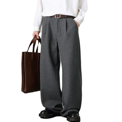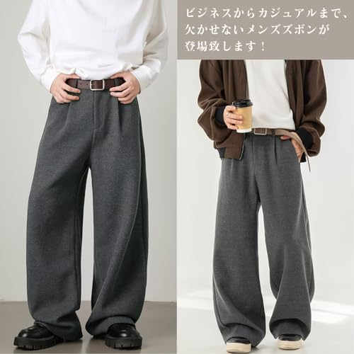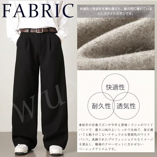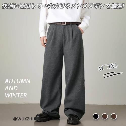 [WUXZHI] ズボン メンズ ビジネスパンツ 秋冬服 ワイドパンツ ラシャ ゆったり スラックス 厚手 カジュアル チノパン 春服 黒 灰 大きいサイズ ファッション
